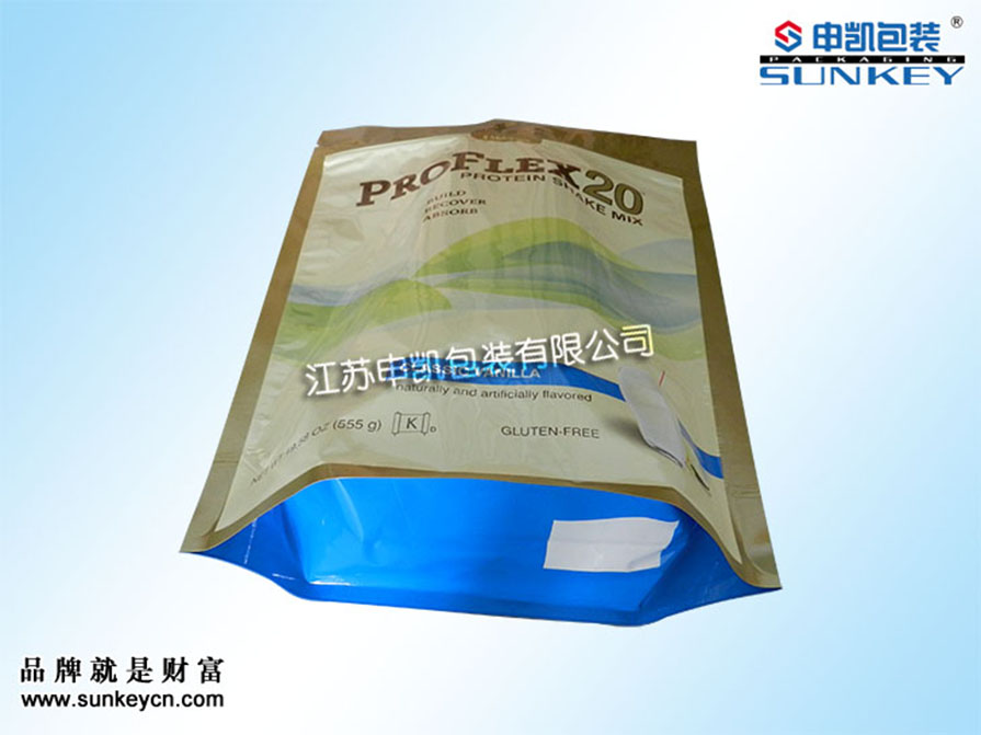 說明:奶粉站立拉鏈袋材質(zhì)一般是由PET/AL/PE組成,經(jīng)過印刷-檢品-復(fù)合-制袋等多層工藝。